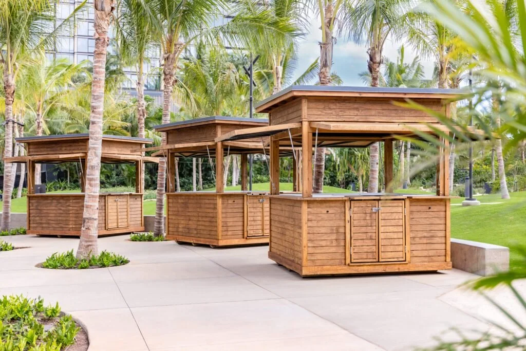Located at Victoria Ward Park in Ward Village, our kiosk sits within the park grounds near the main pedestrian pathways. Easy access from Auahi Street and nearby Ward Village parking